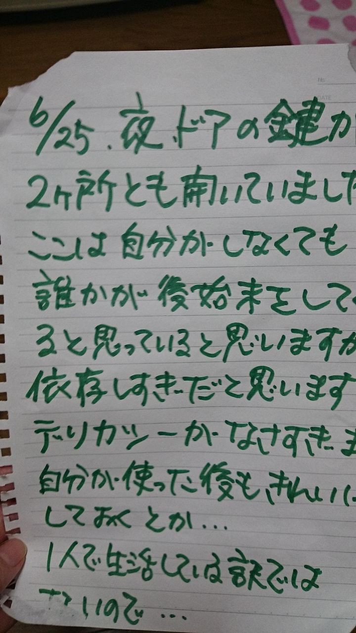 今日もドアが開いていました。もう言いたくないので好きにしてください。少しでもよくなればと思って言ってきましたが。」